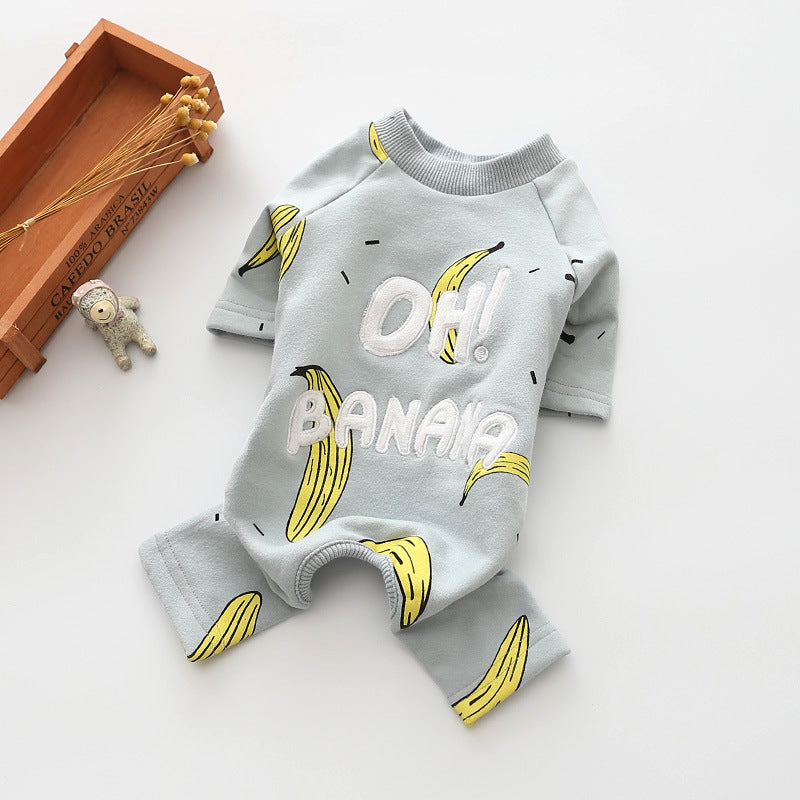 Do you like to wrestle with your French Bulldog anywhere and anytime? Now your puppy can look elegant with this French Bulldog pajama. It is great for all types of weather, it is light and comfortable. With Banana print, these pajamas will surely bring you and your dog years of fun.