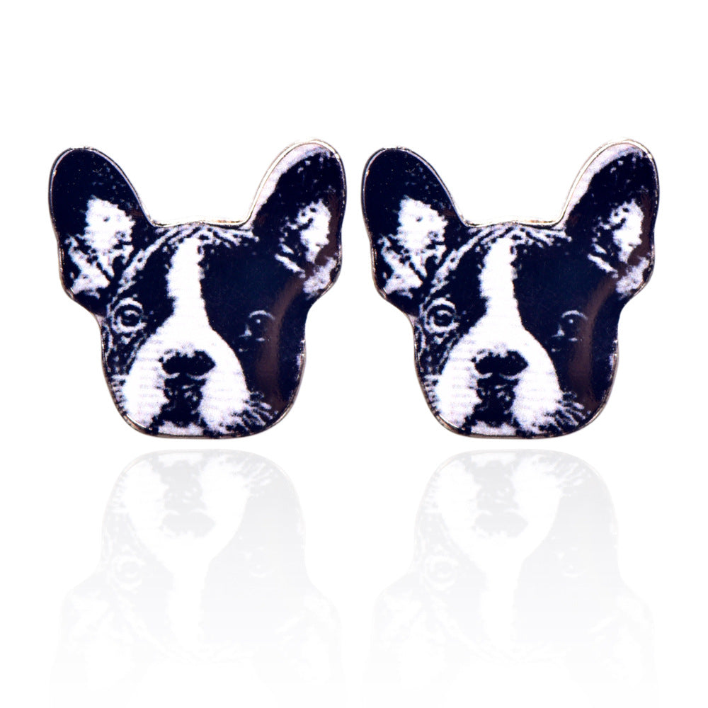 Expertly crafted French Bulldog earrings. Made with precision and attention to detail, these Frenchie earrings are a must-have for any dog lover. They are the perfect accessory to show off your love for French Bulldogs while adding a touch of elegance to any outfit.