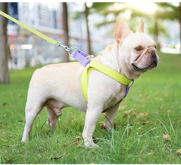The French Bulldog Harness & Leash Set is an ideal pick for dogs that don't like the confined feeling most harnesses provide. This harness is styled after our best-selling Harness but made with a bit more structure to better fit your Frenchie.