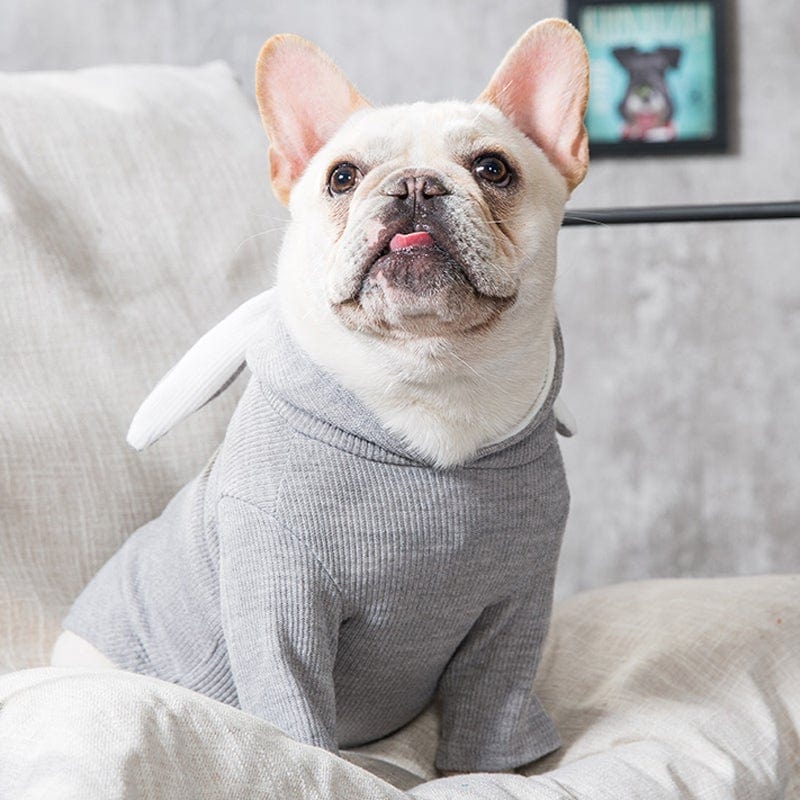 - French Bulldog Rabbit Hoodie a gray hood with white-lined ears, make your sweetheart more cute and charming