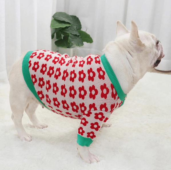 Choose only unique, fancy, and trendy picks for your Frenchie’s wardrobe because they deserve to look fabulous every day. This French bulldog sweater is made of soft and lightweight knitted acrylic and will make your princess warm and protected on breezy days. We adore it because it can be worn through the spring, fall, and winter seasons. The stretchable fabric will support all types of activities, while the cut is tailored to support going to the toilet. The cuffs are double knitted for extra comfort and support and you can wash it in cold soapy water. A slightly elevated neckline serves to keep the dog warm during the wind.