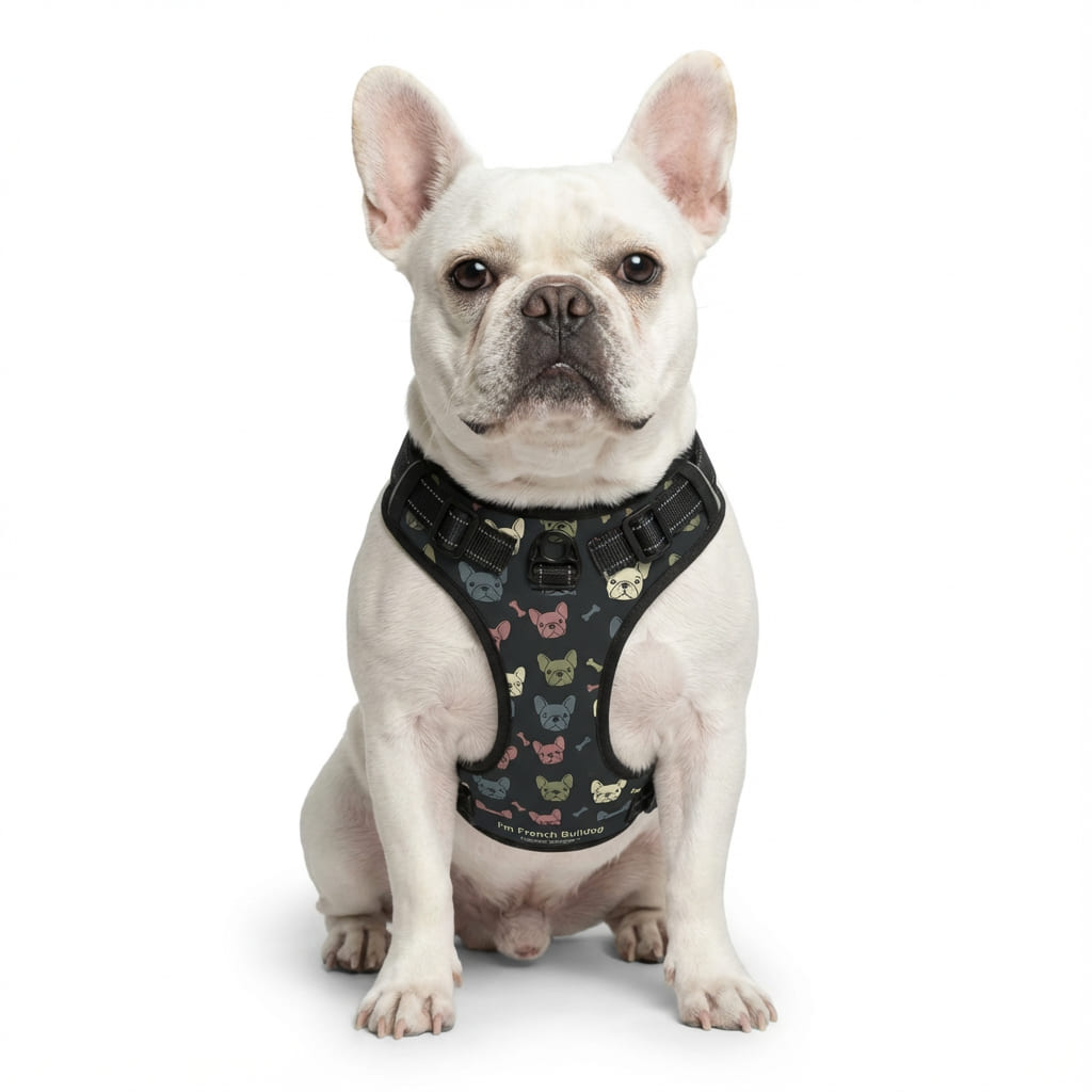 Give your Frenchie the comfort, safety, and style they deserve with the I'm French Bulldog Harness by Frenchie Complex™ — a premium French Bulldog harness designed specifically for the unique body shape of Frenchies.