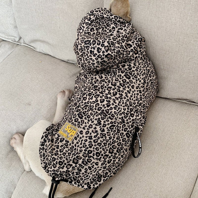 Your French Bulldog will adore a gown with a leopard print - it will look like a real cat from the jungle. This raincoat has a hood and is made of super durable nylon-coated fabric that repels water and makes it easier to chase squirrels. Take him for a walk, camping, or just a walk around the block - the raincoat does not restrict his movement and is perfect for the urban lifestyle of the French.