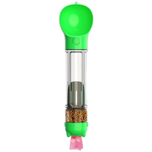 Multi-Functional Dog Bottle is a unique design with a hydration bottle and that not only facilitates the flow of water, but consists of two parts, which hold water and food. The lid has a tight seal to prevent leaks. It does not leak during the flow cycle or when the bottle is stored vertically.