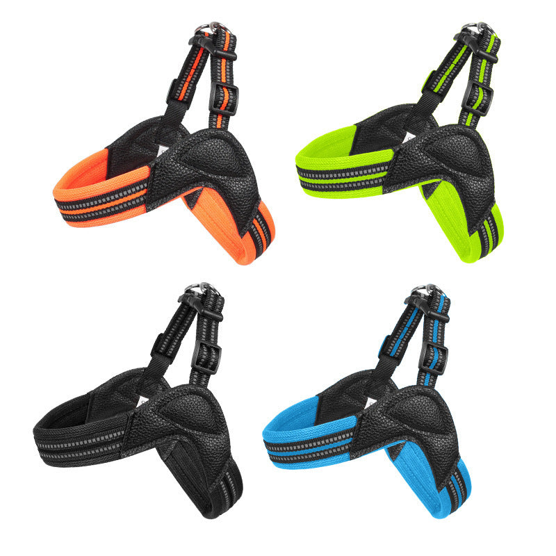 This harness is designed for comfort and durability. Its vibrant, striped design adds style to your dog's walk. Reflective accents keep them safe and visible while out and about during the day or at night. The easy-to-adjust chest strap ensures a secure, custom fit every time you put it on your pup.