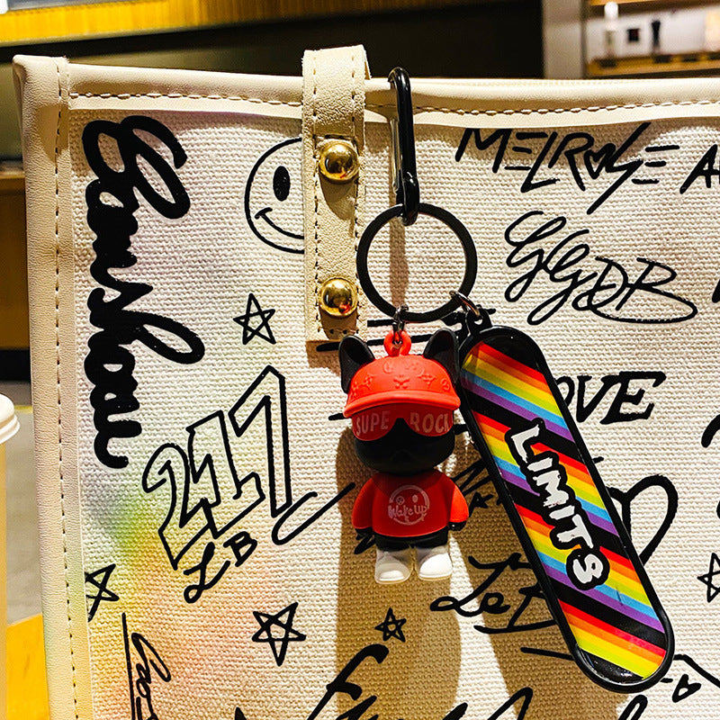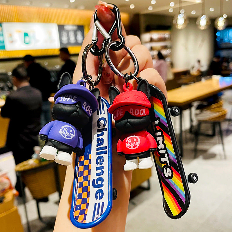 Skateboard French Bulldog Keychains