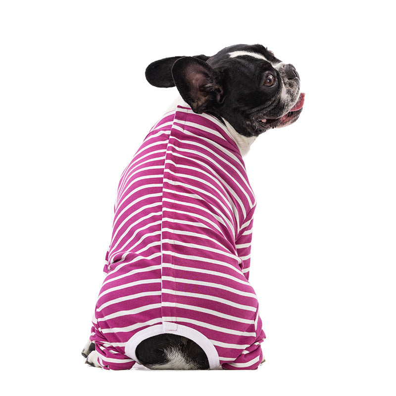 Flexible and stretchable: Unrestricted mobility is possible due to the stretchy fabric. Because they are striped, these pajamas let your Frenchie to move, play, and stretch without any restrictions—perfect for energetic dogs.