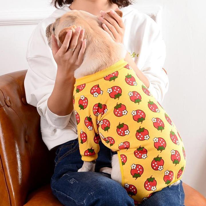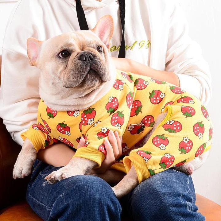We love the playful Strawberry French Bulldog Pajama. Your pup deserves to wear something sweet. Your pup will appreciate being warm and toasty in these adorable and soft pajamas made with lightweight and slightly stretchy fleece fabric. So snuggly and warm!