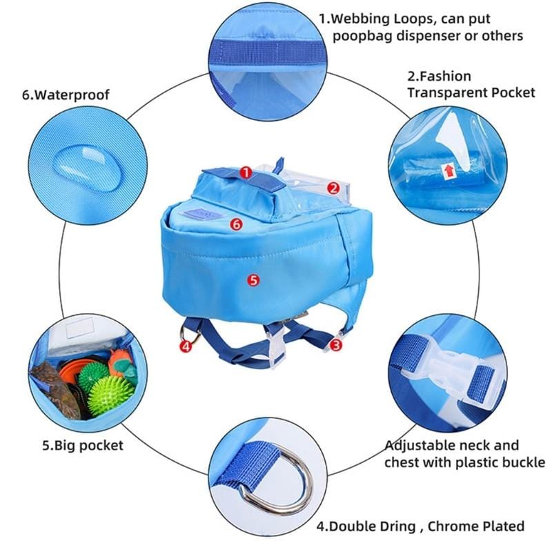 Our Waterproof French Bulldog Backpack is a combination of a backpack and a harness, a perfect tool for sightseeing with your furry friend. You can put food, water, treats and other items in the storage bag.