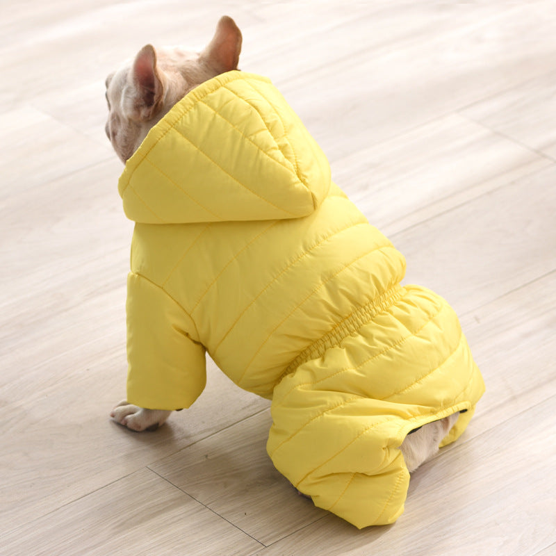 Whole Body covering: The Frenchie Winter apparel provides complete covering, shielding your dog's entire body from the chilly impacts of winter weather, thanks to its full-body design and elastic cuff sleeves.
